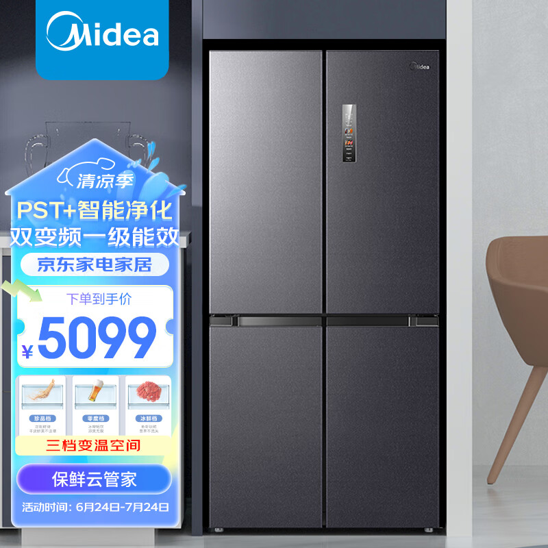 美的(Midea)476升十字对开门冰箱变频一级能效家用家用电冰箱超薄风冷无霜BCD-476WSPZMA(E)云釉灰【专】价格:5099.00元!