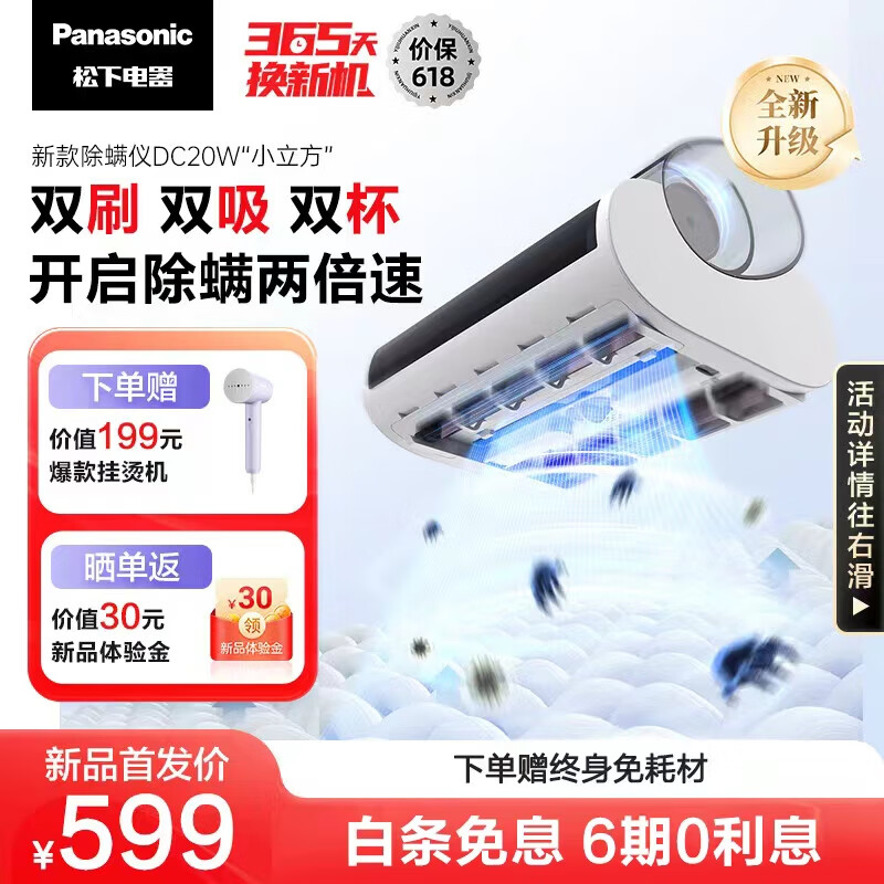 松下除螨仪 双滚刷双杯尘螨分离 家用床上紫外线杀菌除螨机去螨虫600W大吸力吸尘神器MC-DC20W价格:599.00元!