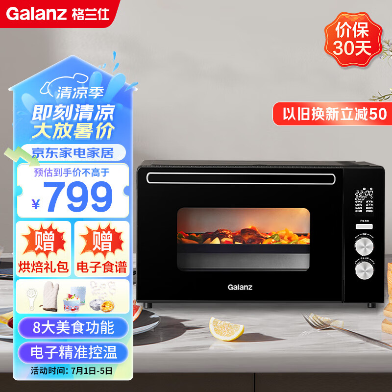 格兰仕(Galanz)空气炸锅 烤箱 烤箱家用 电烤箱 42L空气炸电烤箱 电子温控风炉烤箱精准控温 KF1842ELQ-S3N价格:799.00元!