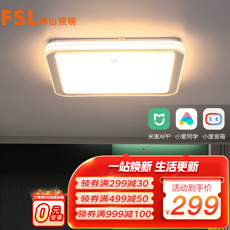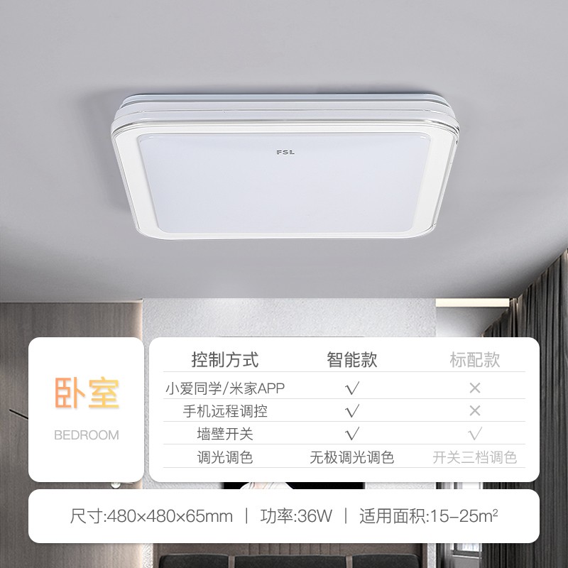 FSL佛山照明吸顶灯LED卧室灯具书房灯饰米家智控调光调色54064/36W方价格:329.00元!