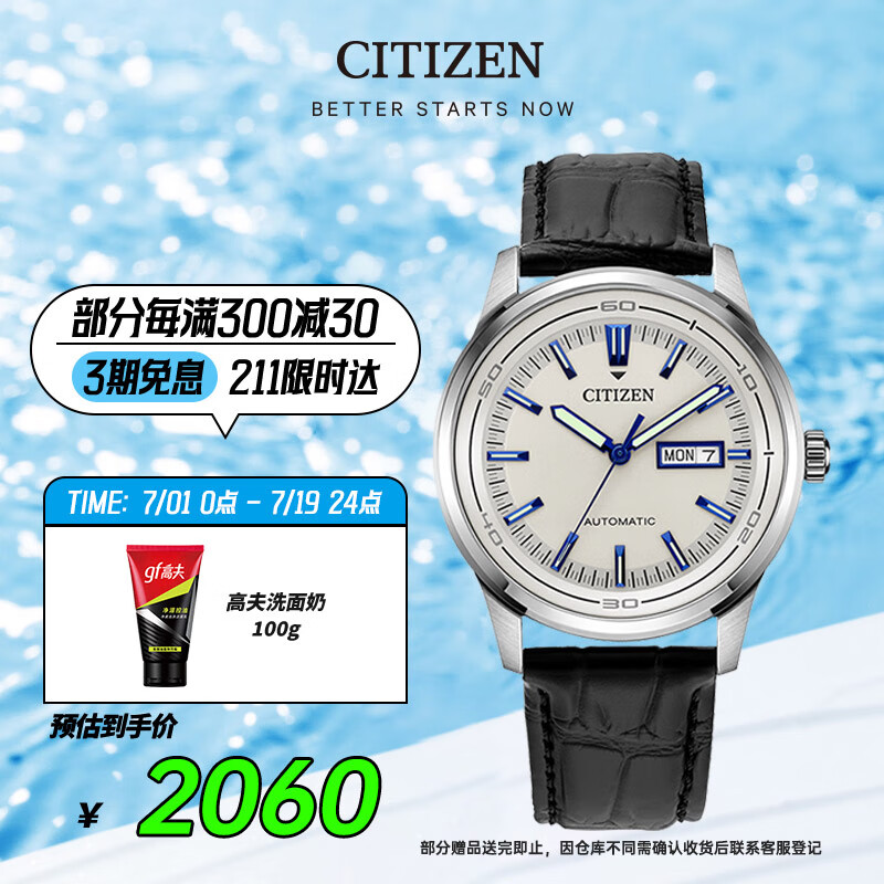 西铁城(CITIZEN)手表男日韩表自动机械日显白盘皮带商务学生父亲节礼物NH8400-10A价格:2270.00元!
