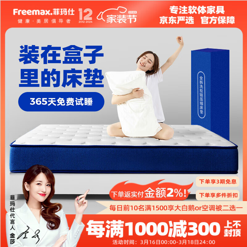 菲玛仕(freemax)海绵床垫独立袋弹簧床垫记忆棉床垫亲肤透气床垫卷包床垫15,BL2#价格:2699.00元!