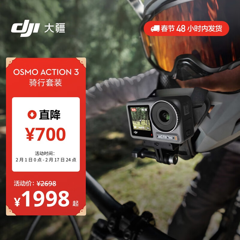 大疆 DJI Osmo Action 3 骑行套装 运动相机 4K增稳户外骑行头戴摄像机摩托车行车记录仪vlog相机价格:1998.00元!