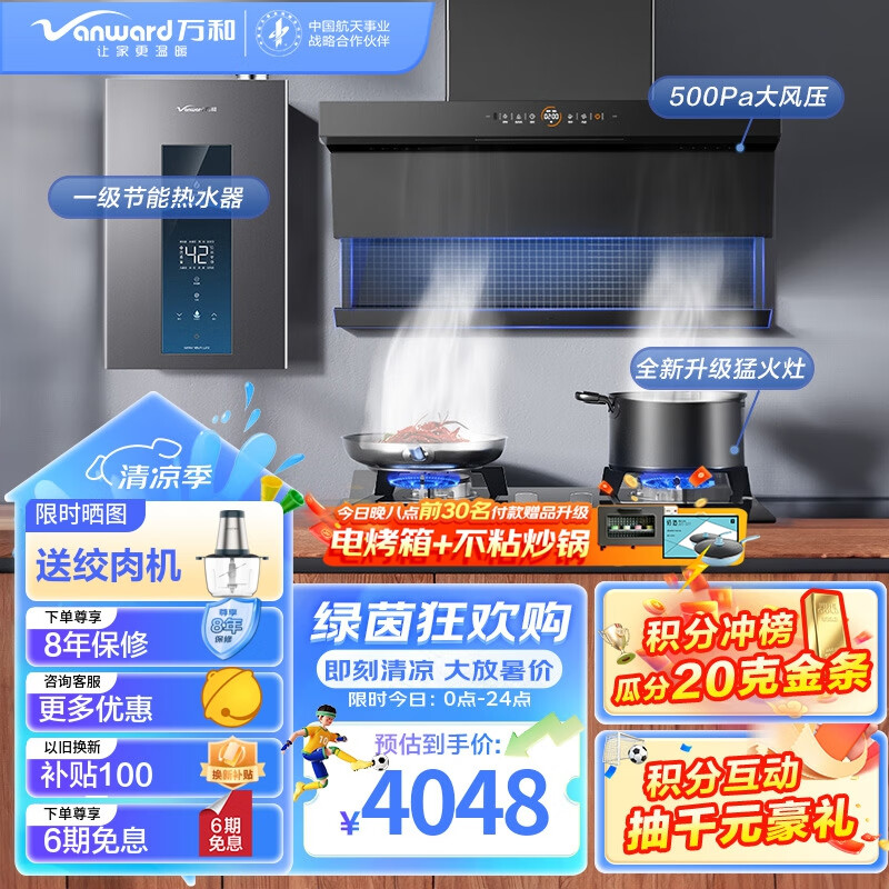 万和(Vanward)烟灶热三件套 厨房多件套 油烟机燃气灶一级零冷水热水器套装WL880+B7L51+MLS5D16(天然气)价格:4048.00元!