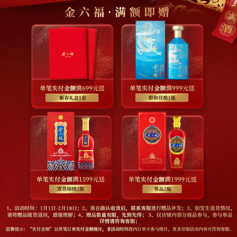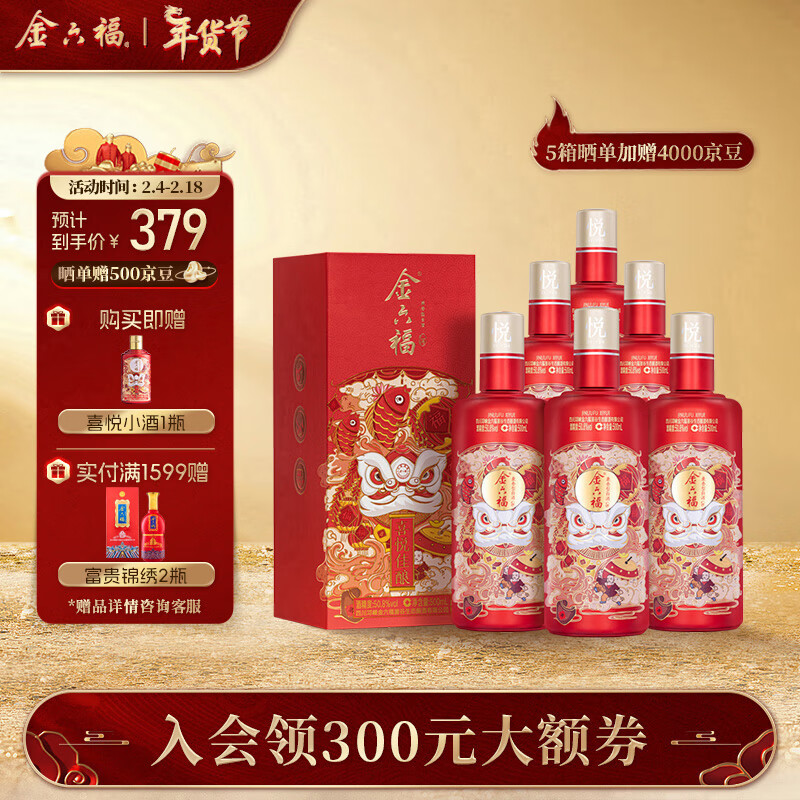 金六福 喜悦佳酿 50.8度 500ml*6 整箱装 浓清兼香型白酒【年货送礼】价格:421.00元!