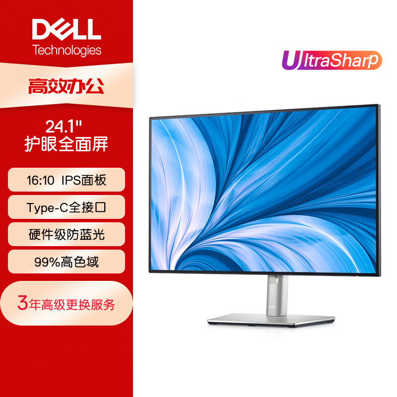 戴尔(DELL)UltraSharp 24.1英寸 办公显示器 IPS 16:10 防蓝光 Type-C90W反向充电 旋转升降支架 U2421E价格:2399.00元!