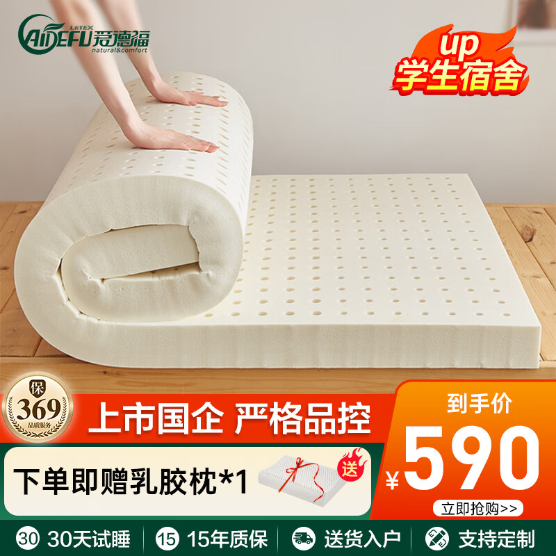 爱德福 乳胶床垫 单人学生宿舍专用床褥加厚0.9m1.2米定制 100*190*5cm价格:690.00元!