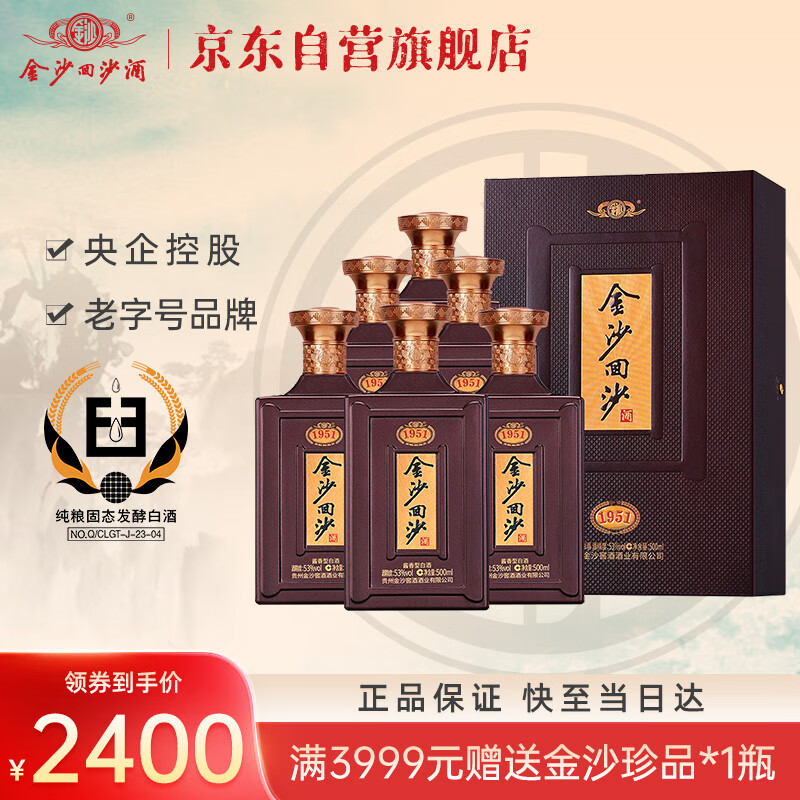 金沙回沙酒 纪年酒1951 酱香型白酒 53度 500ml*6瓶 整箱装 纯粮食酒价格:2430.00元!