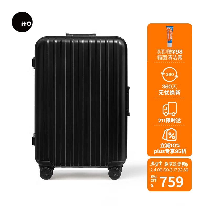 ITO行李箱CLASSIC 15拉杆箱男女旅行登机箱万向轮大容量黑色20英寸价格:888.00元!