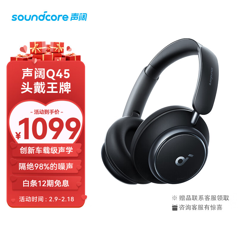 声阔Soundcore Space Q45声阔头戴式无线蓝牙HIFI耳机三重动态滤噪适用苹果/华为手机黑色价格:1099.00元!