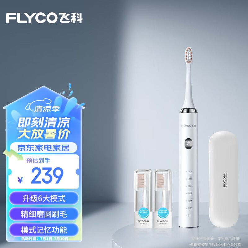 飞科(FLYCO)电动牙刷成人全自动智能声波软毛护龈深层清洁情侣送男友送女友生日七夕情人节礼物FT7205皓月白价格:239.00元!
