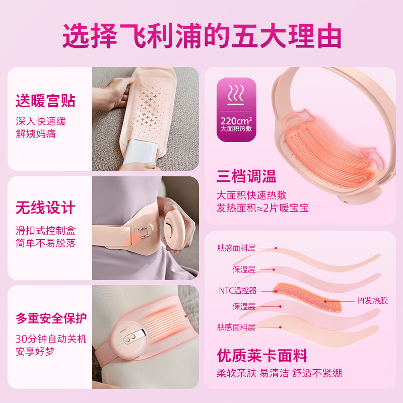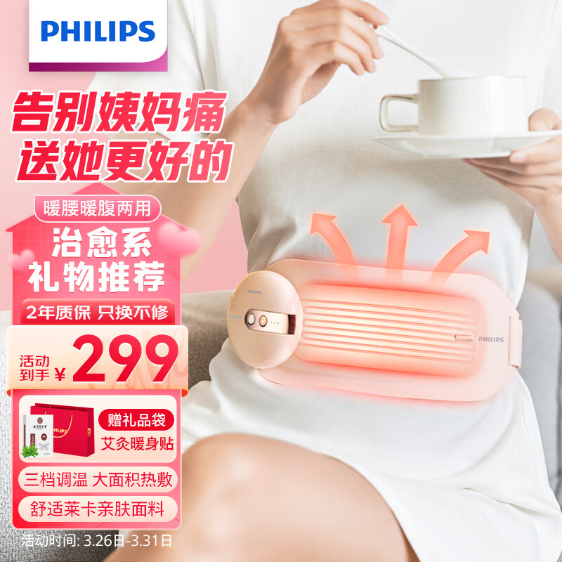 飞利浦腰部按摩仪按摩器女生大姨妈神器缓解腰酸保暖暖宫腰带热敷护腰带暖腹仪 生日礼物送女友3205B价格:399.00元!