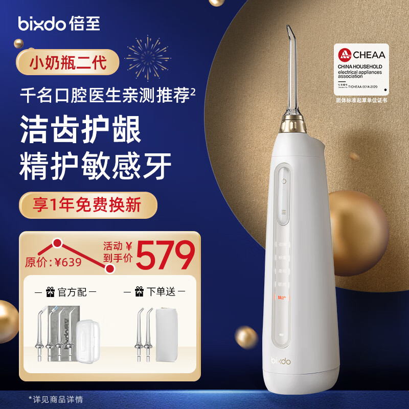 倍至(bixdo)冲牙器小奶瓶二代洗牙器水牙线洁牙器儿童便携无线充电5档模式4支专业喷头送男女朋友礼物价格:569.00元!