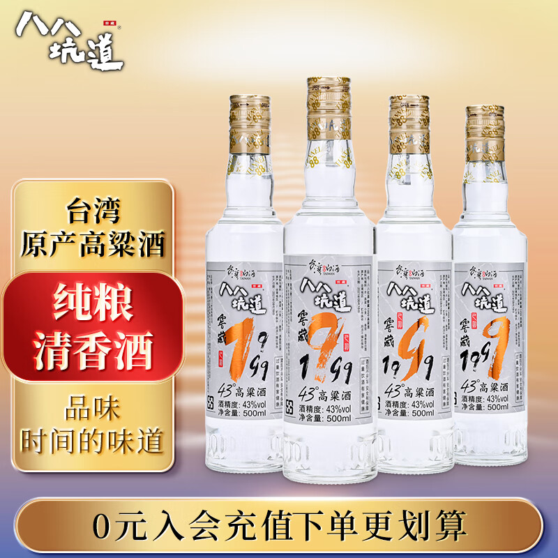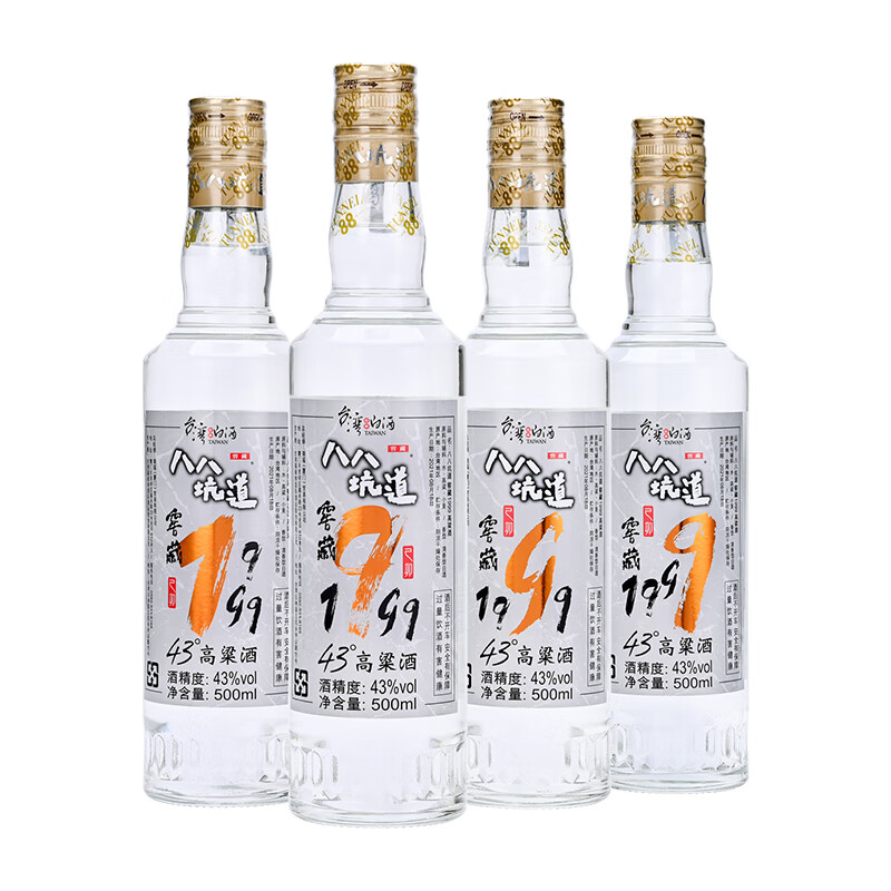 八八坑道 窖藏1999 清香型白酒 43度 500ml*4瓶 整箱装价格:498.00元!