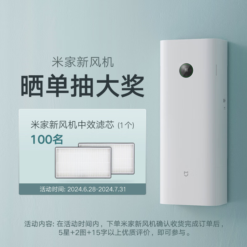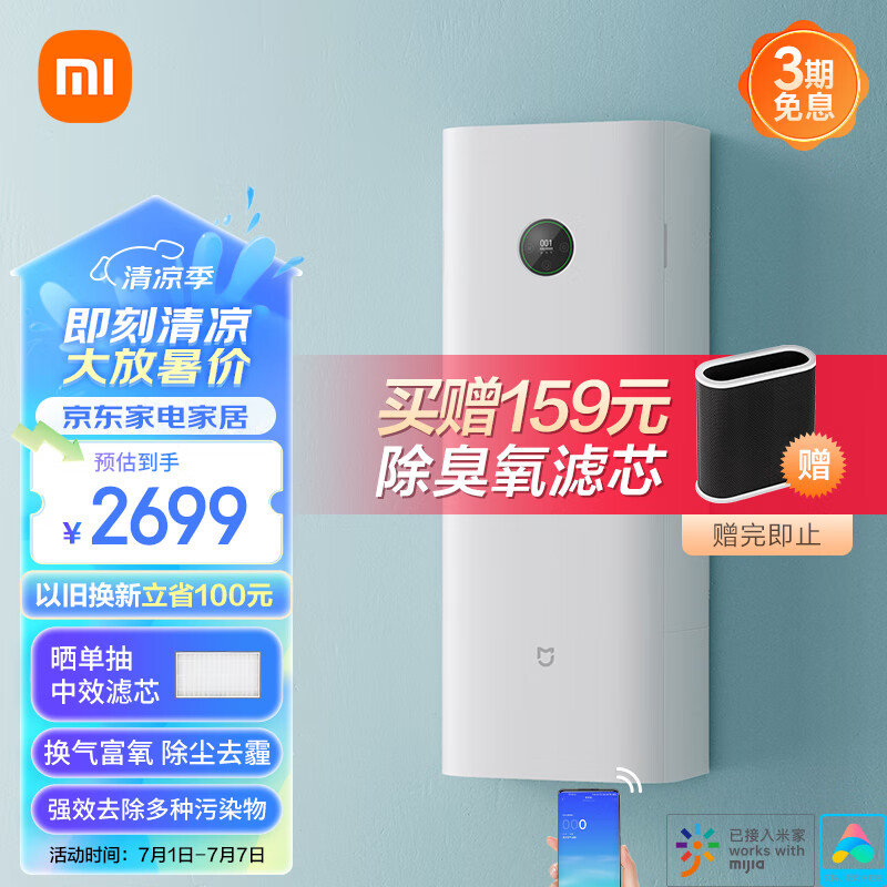 米家米家小米新风机空气净化器 除菌除甲醛 家用壁挂新风系统 全屋换气300m3/h适用105㎡ 带电辅热功能价格:2699.00元!