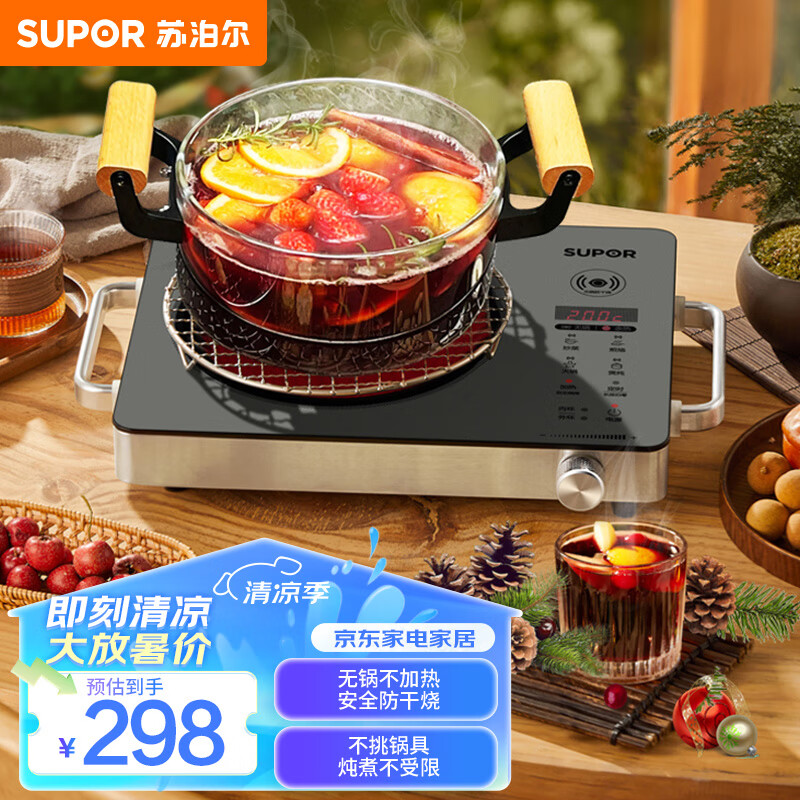 苏泊尔(SUPOR)电陶炉 家用电磁炉 低噪辐射 双环控温 2200W大功率 火锅炉 智能防干烧爆炒炒菜 围炉煮茶C22-CS50价格:298.00元!
