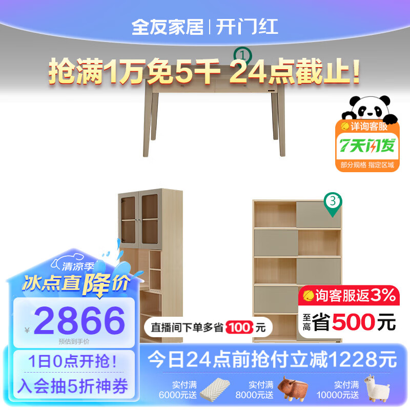 全友家居 北欧书桌书柜书桌架家具套装组合 半开放分区书柜106321价格:4094.29元!