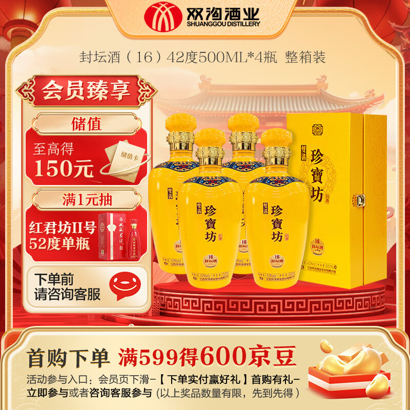 双沟 珍宝坊封坛酒(16) 42度 500ml*4瓶 整箱装 浓香型白酒价格:1668.00元!