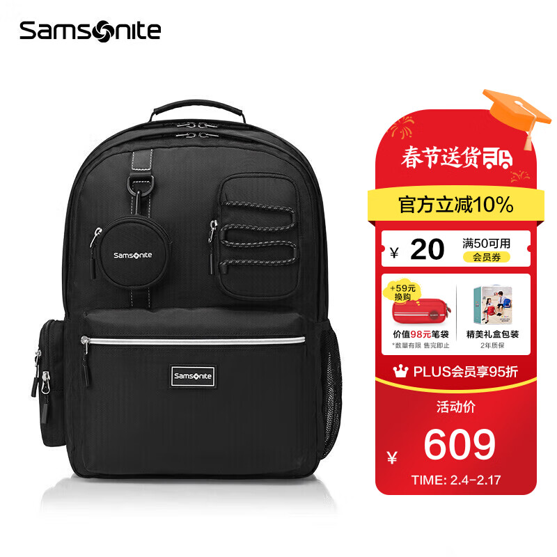 新秀丽(Samsonite)学生书包初中生男女孩双肩包背包健康抗菌NW4*09001黑色价格:699.00元!