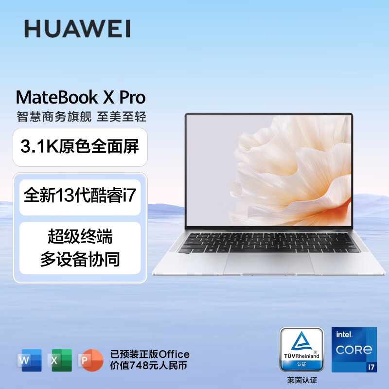 华为MateBook X Pro笔记本电脑 13代酷睿处理器/3.1K原色触控屏/超轻薄商务旗舰办公本 i7 16G 1T 皓月银价格:9699.00元!