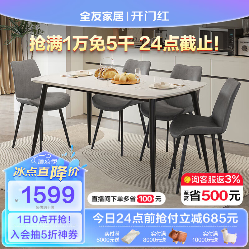 全友家居 餐桌耐用岩板台面长条桌餐厅稳固金属框架吃饭桌子DW1179价格:2284.29元!