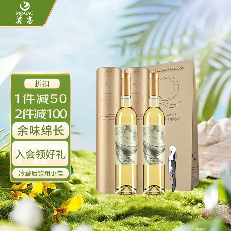 莫高(MOGAO) 冰白葡萄酒红酒 甜果冰酒 典金 500ml*2双支礼盒装送礼价格:299.00元!