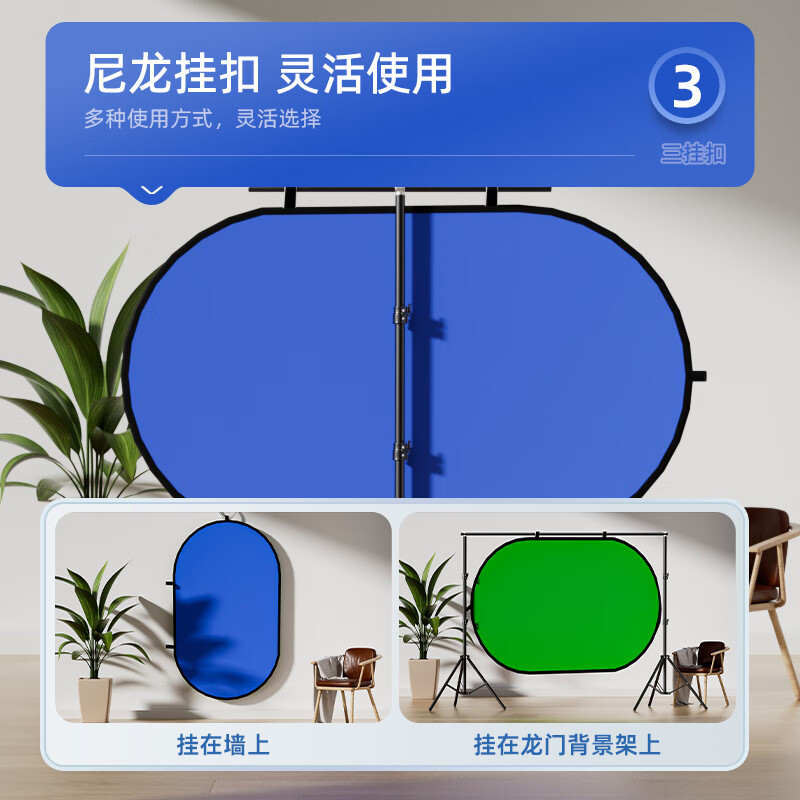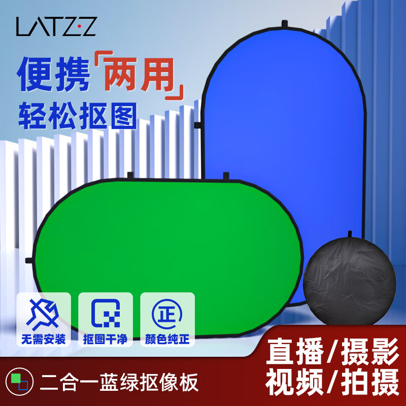 徕兹(LATZZ)1.5*1米蓝绿双色背景布拍摄摄影直播绿幕抠像布背景板蓝绿布便携外拍证件照拍照可折叠双面背景墙价格:128.00元!