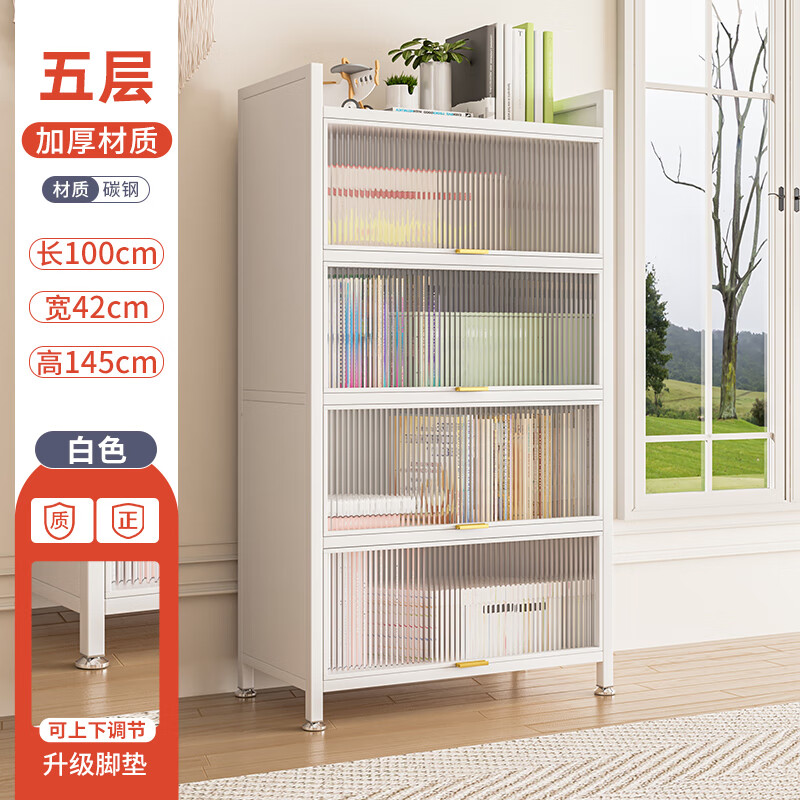 唐辑钢制书柜书架落地多层带门防尘铁艺置物架收纳储物柜五层长100价格:619.00元!