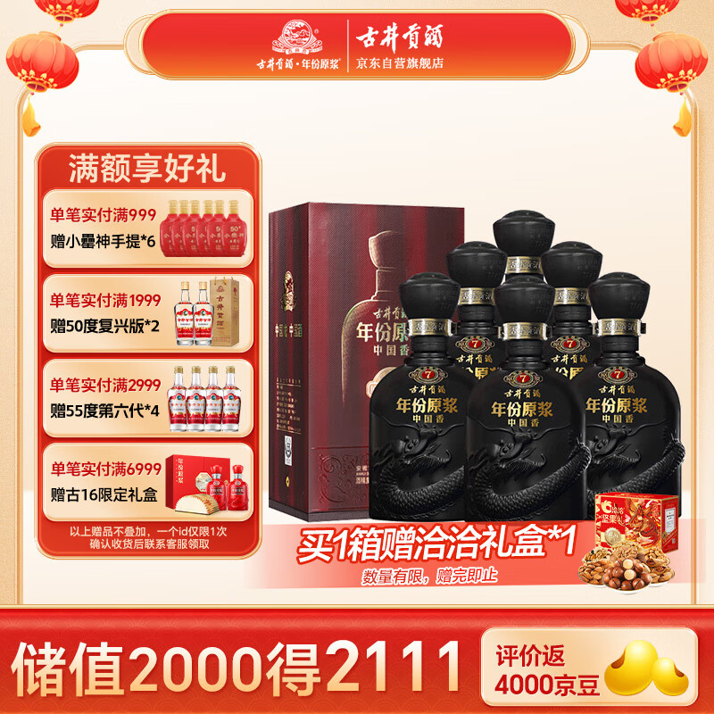 古井贡酒 年份原浆中国香古7浓香型白酒 42度500ml*6瓶 整箱装 过年送礼价格:1623.53元!