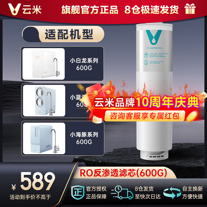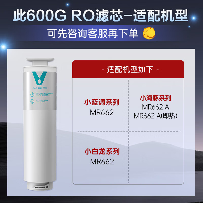 云米(VIOMI)净水器滤芯适配小蓝调 小海豚 小白龙400G、600G 1号5in1适用于Cross 600G/Cross 800G滤芯 2号RO膜600G(仅支持600G机型)价格:599.00元!