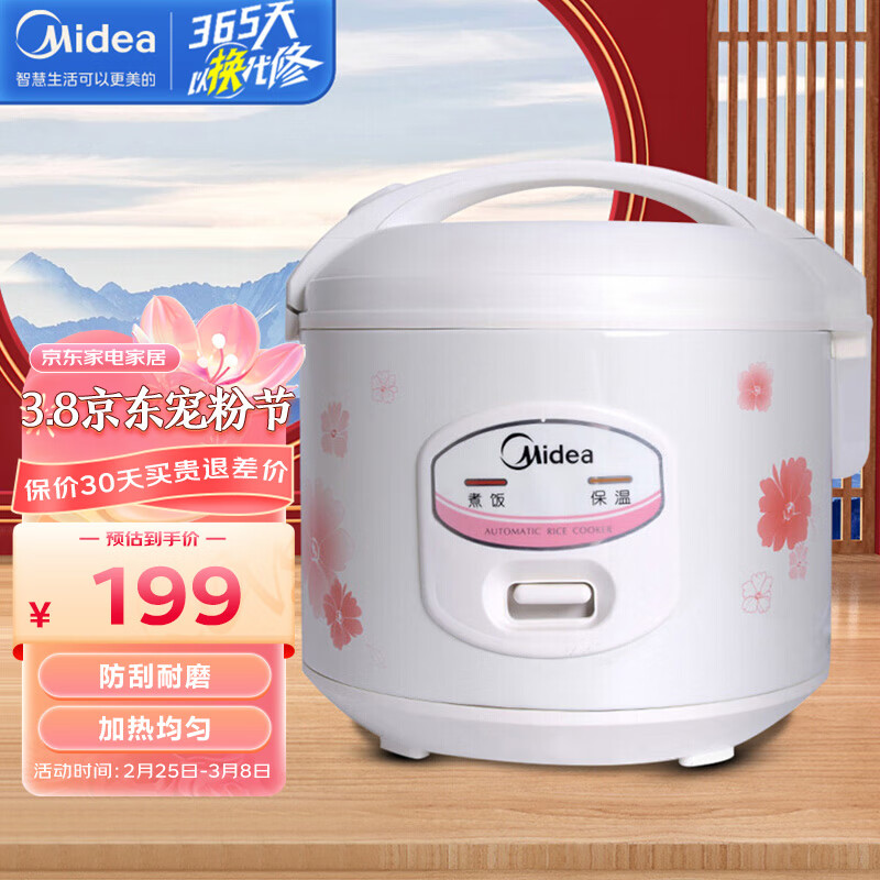 美的(Midea)老式电饭煲饭锅3L机械不粘内胆家用迷你白色印花可拆洗接水盒YJ308J(线下同款)价格:199.00元!