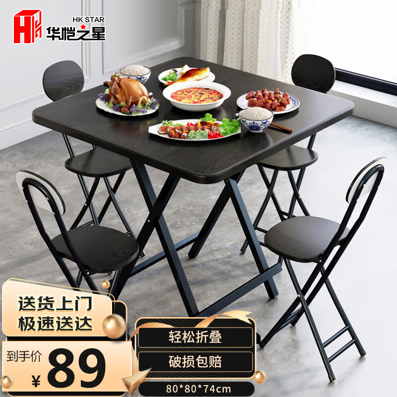 华恺之星折叠桌 桌子折叠餐桌简易便捷小户型饭桌方桌吃饭桌CJ018 80cm价格:89.00元!