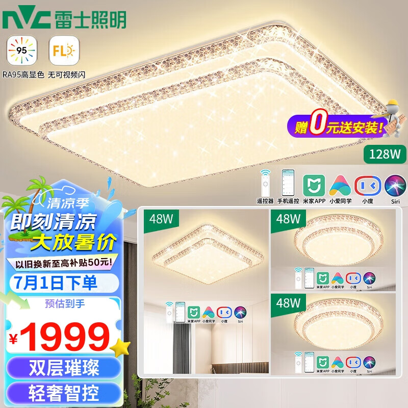 雷士(NVC)led吸顶灯米家智能客厅大灯现代轻奢风卧室照明灯具套餐白金碧月C价格:2498.00元!