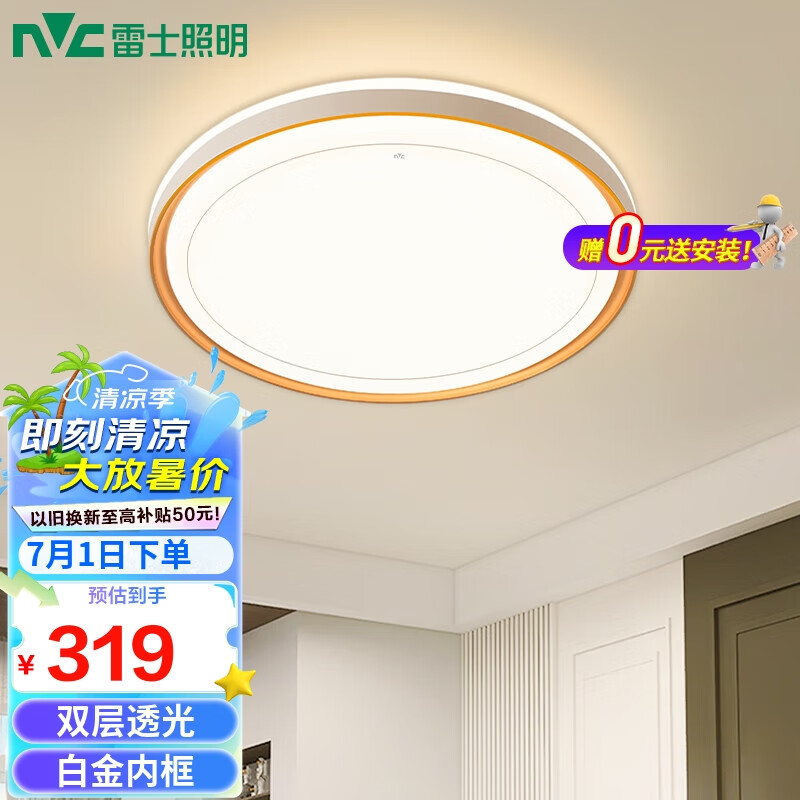 雷士(NVC)LED吸顶灯 现代简约风格书房卧室餐厅灯具 双层发光三色调光灯饰价格:398.00元!