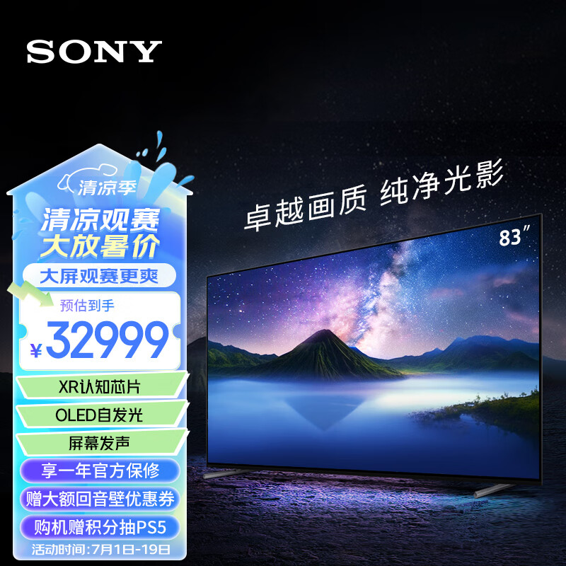 索尼(SONY)【官方直营】XR-83A80L 83英寸 4K OLED智能电视 屏幕发声 XR认知芯片 屏设计 京配上门价格:32999.00元!