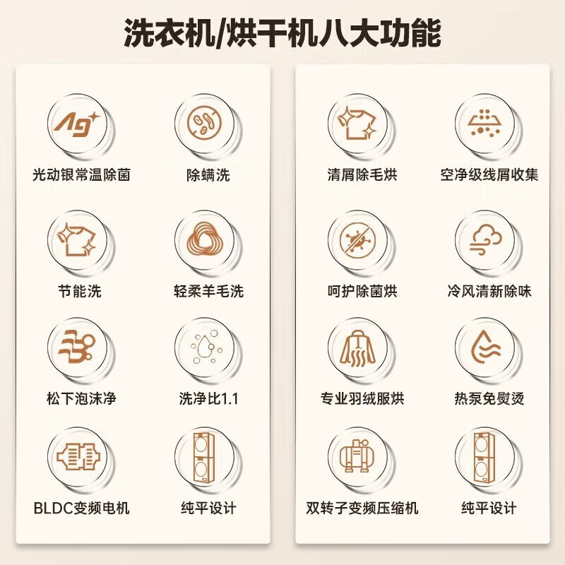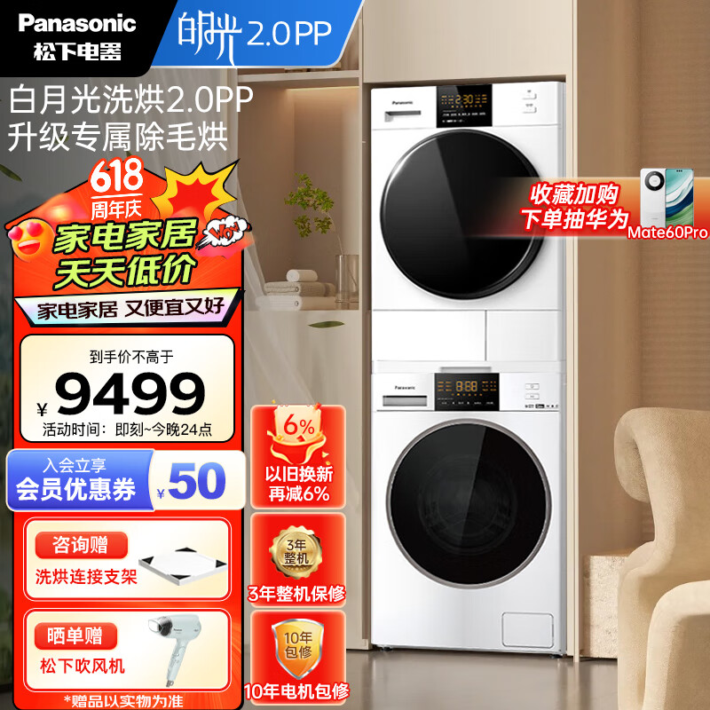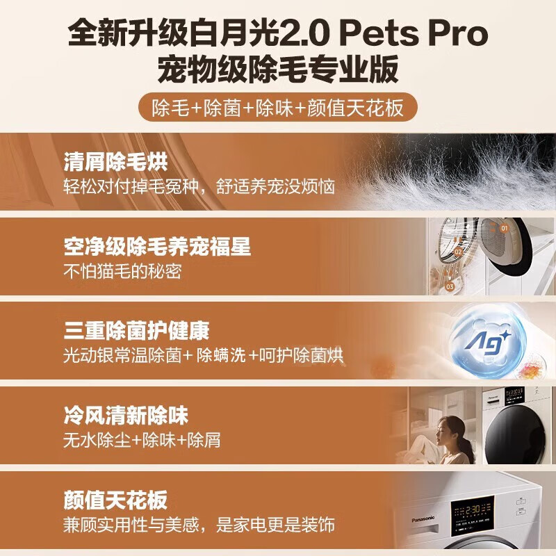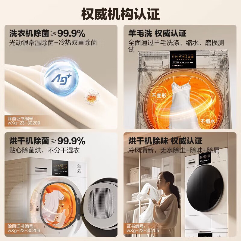 松下(Panasonic)白月光2.0PP洗烘套装 10公斤一级能效滚筒+10公斤热泵烘干机 除菌螨 宠物除毛烘 NVAE+82QR1价格:9499.00元!