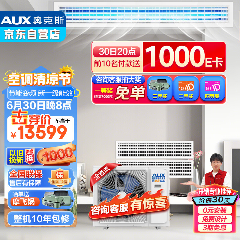 奥克斯(AUX)中央空调大3匹一拖二多联机风管机一级能效全直流变频自清洁嵌入式空调适用一室一厅DLR-H80W(G1)价格:13599.00元!