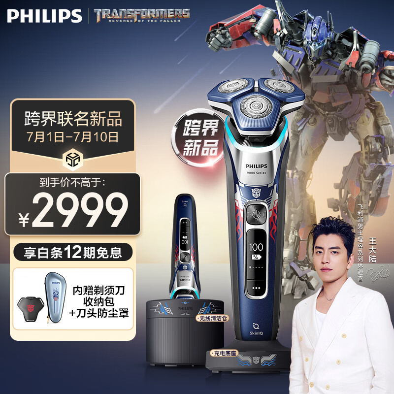 飞利浦(PHILIPS)电动剃须刀蜂巢9系 擎天柱联名 SkinIQ智能光感刮胡刀 配无线清洁中心 送男友 送老公价格:2999.00元!