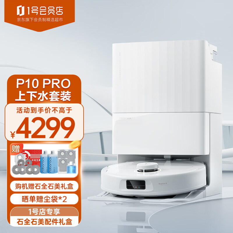 石头P10Pro 扫地机器人 上下水新升级自动洗拖布自集尘大吸力扫拖一体机 全新升级P10Pro上下水版价格:4299.00元!