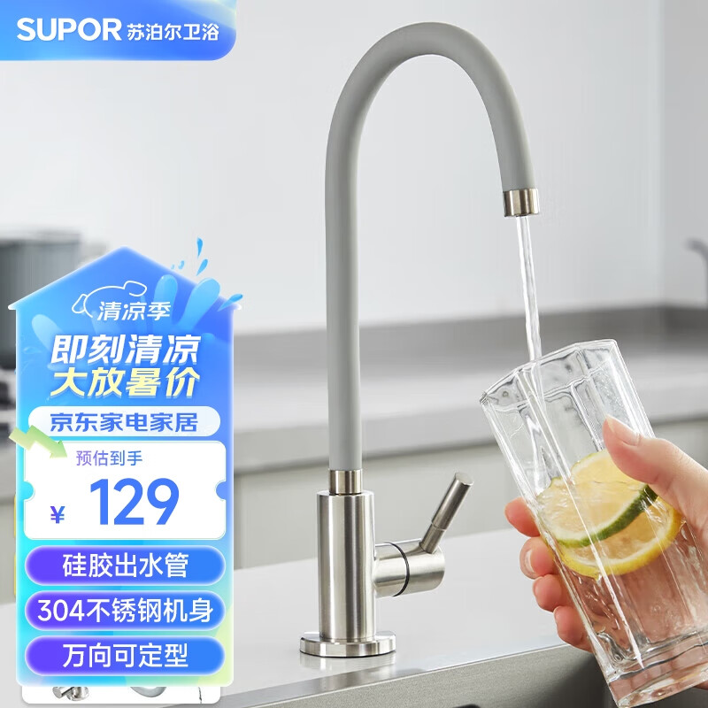 苏泊尔(SUPOR)万向可弯折定型净水器水龙头 厨房不锈钢直饮纯净水单冷龙头234分价格:129.00元!
