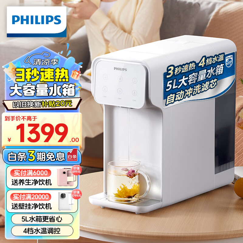 飞利浦(PHILIPS ) 加热净水器水魔方T1 台式净水机免安装反渗透即热饮水机净饮一体机 ADD6814价格:1399.00元!