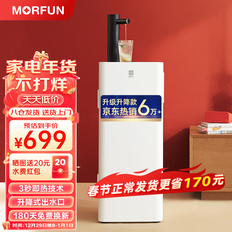 魔凡(MORFUN)即热式茶吧机饮水机家用高端客厅用智能全自动上水下置式桶装水办公室小型速热泡茶烧水一体机 MF809-1黑色柱【升级升降款】 即热型价格:869.00元!