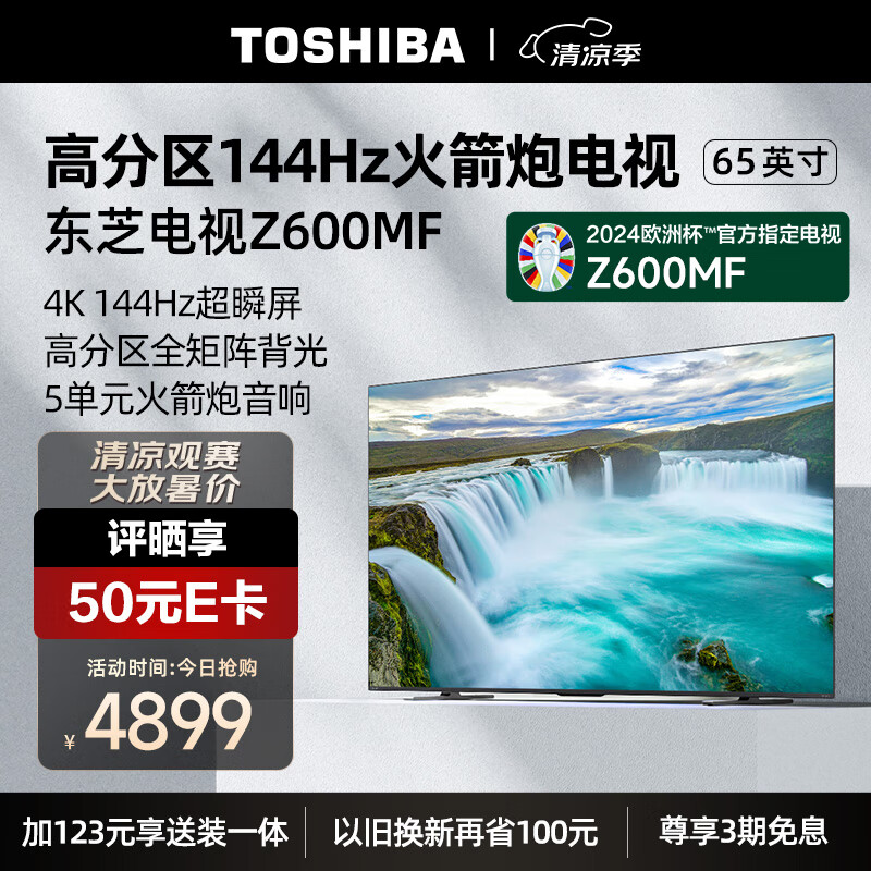 东芝电视65Z600MF 65英寸 欧洲杯 4K 144Hz 160分区 BR芯片 4+64GB 液晶智能平板电视机 品牌前十名价格:4899.00元!