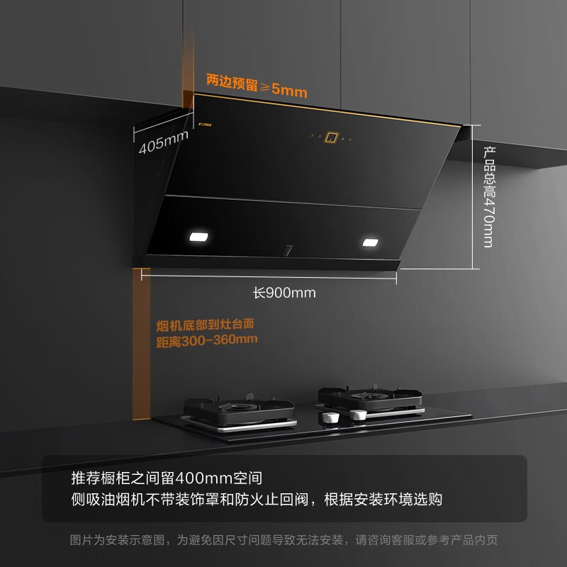 烟机安装尺寸:900±50mm