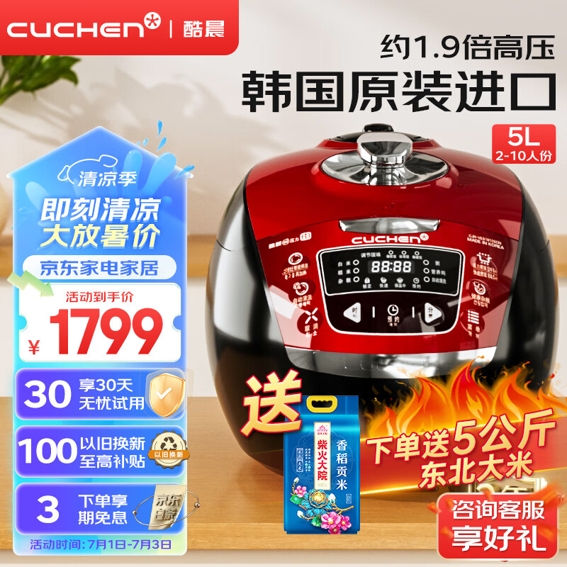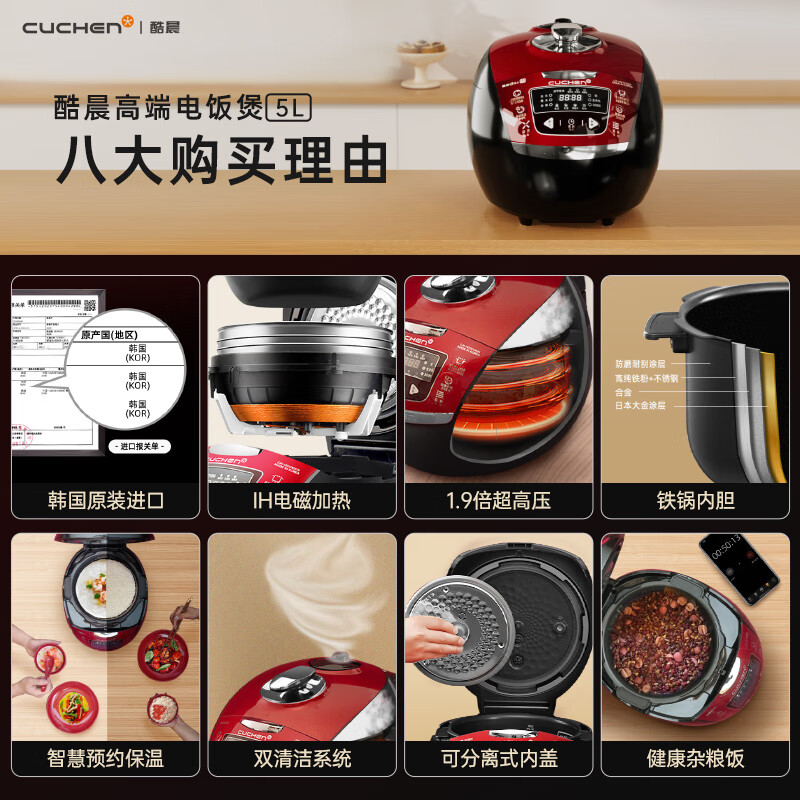 酷晨(CUCHEN)电饭煲韩国原装进口5升5-8人电饭锅IH电磁加热1.9倍高双清洁CJH-VES1010SCN价格:1799.00元!