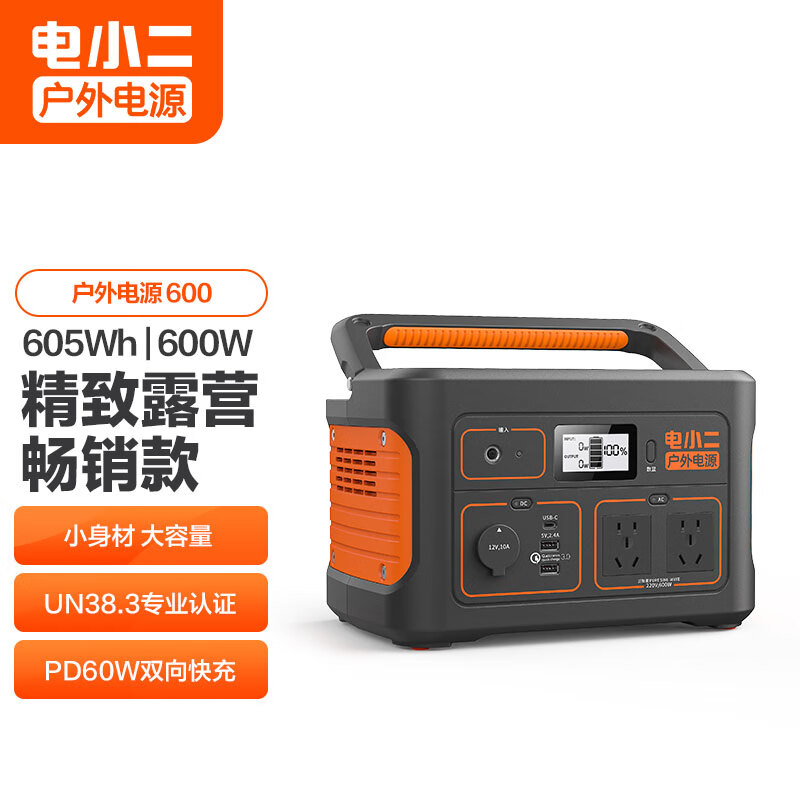 电小二【轻巧便携】户外电源600W大功率大容量220V移动电源 车载电瓶充电宝 露营应急蓄电池 户外电源600价格:1899.00元!
