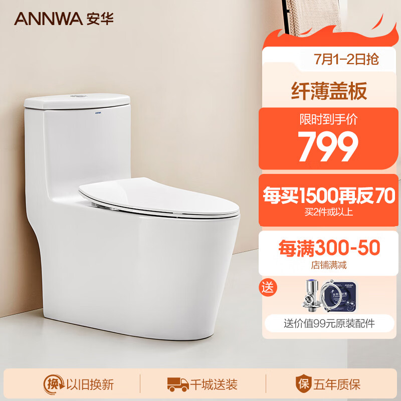 安华虹吸马桶一级水效家用抽水薄盖板普通坐便器连体坐厕NL15001AM价格:949.00元!