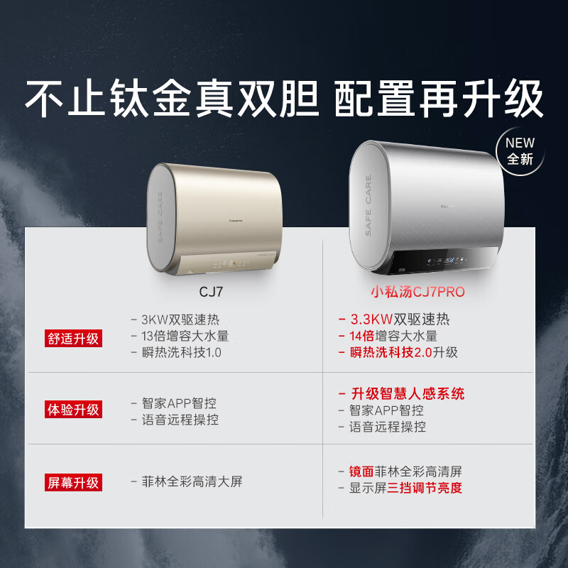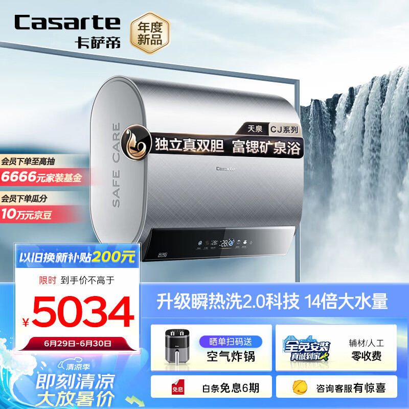 卡萨帝(Casarte)80升速热储水式电热水器家用双胆扁桶型 富锶小私汤 独立真双胆CEC8003HD-CJ7PROAEKU1价格:5299.00元!