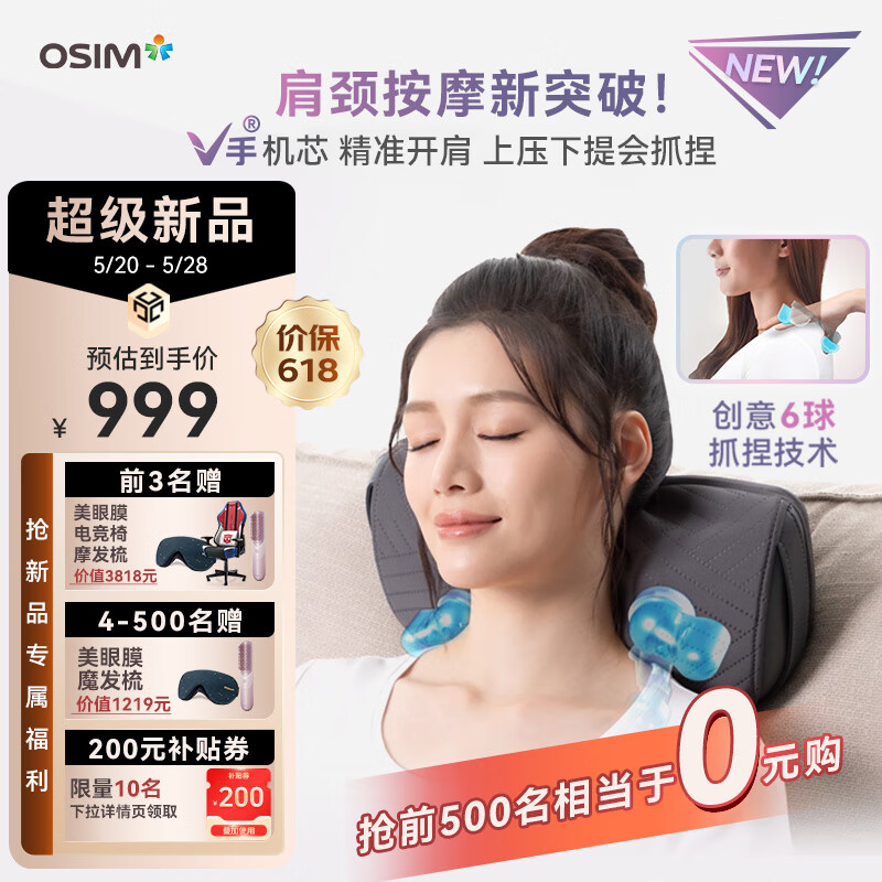傲胜(OSIM)颈椎按摩器按摩靠枕 V手暖摩枕 OS-2230 多部位揉捏 颈部腰部肩颈按摩仪 热敷 太空灰 情人节礼物价格:1288.00元!