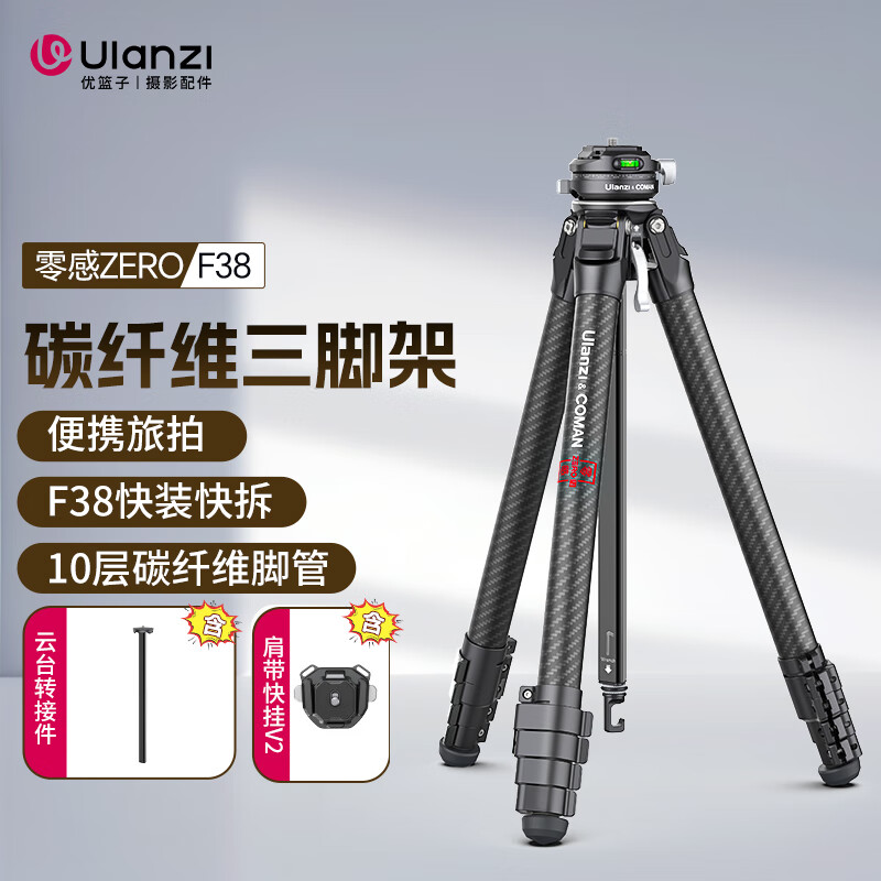 优篮子Ulanzi 零感ZERO F38碳纤维三脚架(肩带快挂V2套装)户外旅行便携三角架相机单反直播支架 价格:1647.00元!